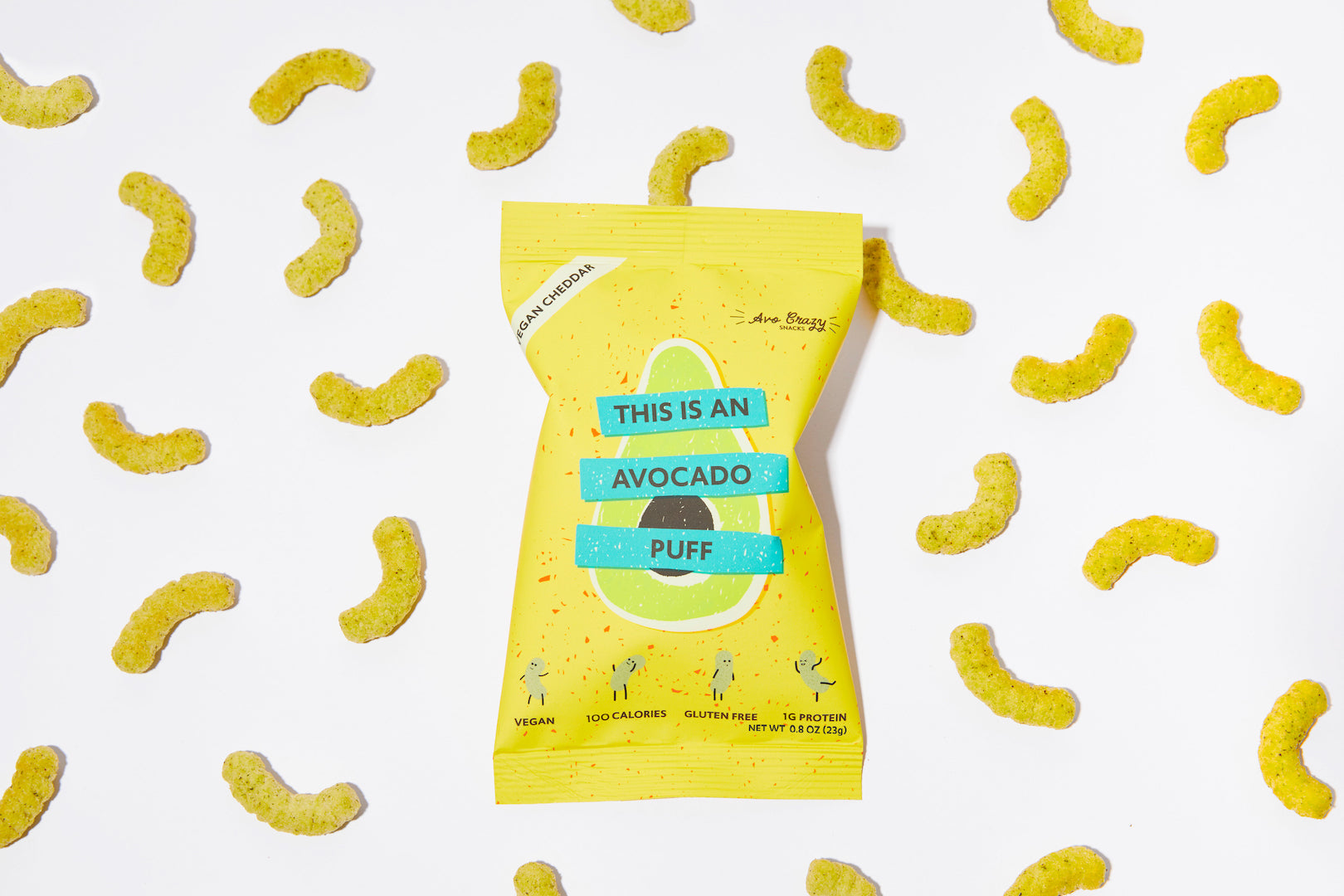 Tastes just like a cheese puff, but without all the bad stuff! Our crunchy, crispy, vegan cheddar flavored avocado puffs, are gluten free, dairy free, vegan, and so delicious you won't believe it’s a healthy way to snack! Our puffs are the perfect guilt-free, nutrient-dense, tasty, non-greasy alternative to regular chips or puffs, that’ll melt in your mouth. WARNING: our puffs are addicting so you’re not crazy, you’re just Avo Crazy.